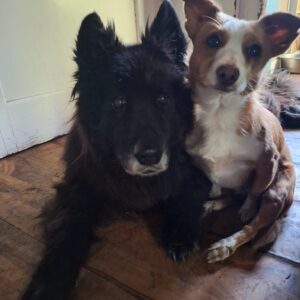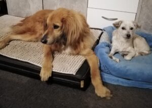 Sammy (links) mußte ein Hinterbein amputiert werden und Shiva hat ein behindertes Vorderbein. Beide sind aus Veria/Nordgriechenland.