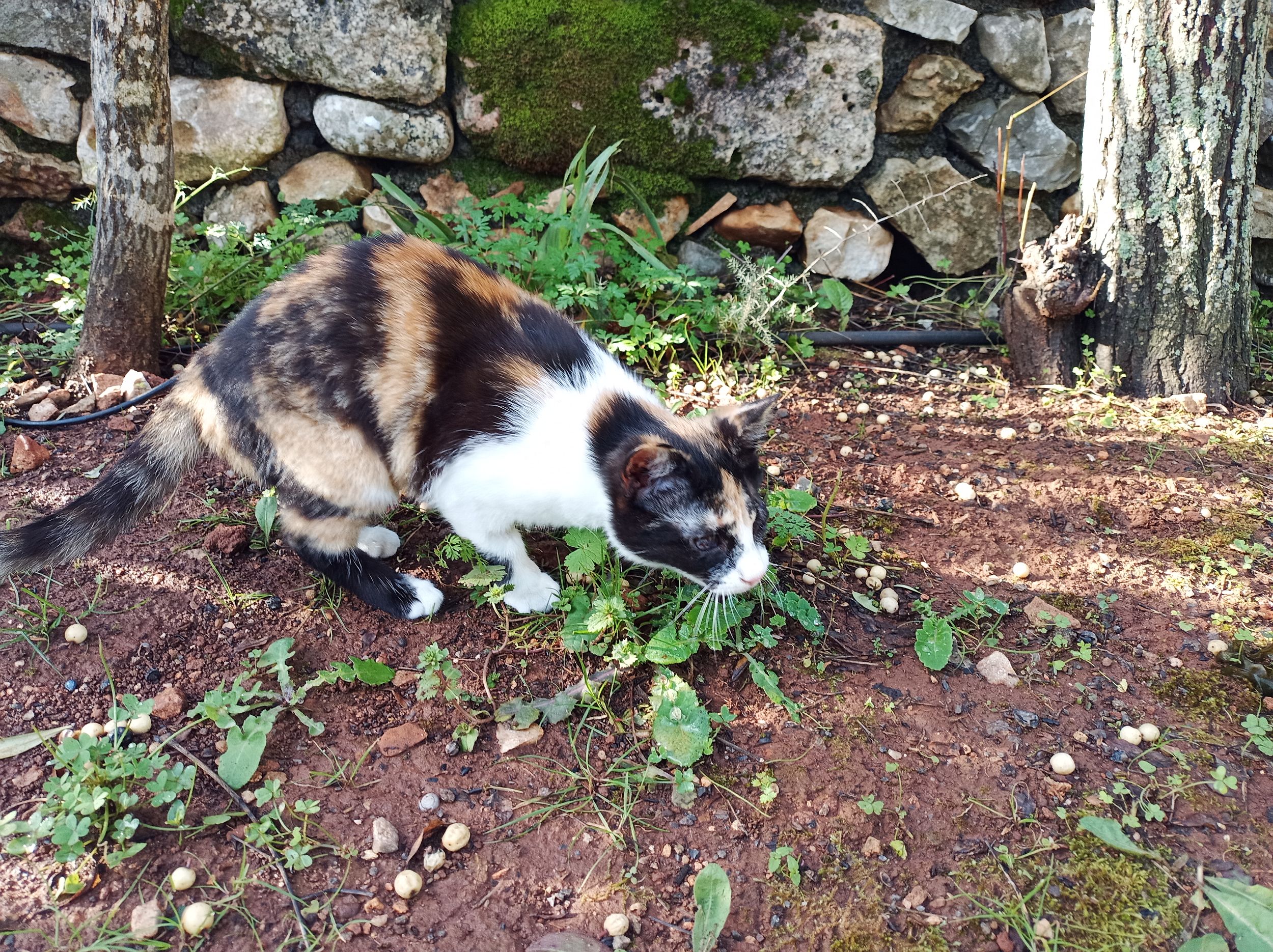 Sie ist im September 2025 geboren und wurde Ende Januar 2026 sterilisiert; ist bereits geimpft und gechipt. Ein Auge wurde zugenäht, das andere Auge wurde gereinigt und die Nickhaut etwas gekürzt damit sie ein bisschen mehr sieht. Sie spielt bei uns im Garten mit anderen Katzen, klettert auf Bäume und Mauern und genießt ihr Leben. Nachts schläft sie im Haus und bei uns im Bett. Mit unserem kleinen Hund hat sie auch keine Probleme.